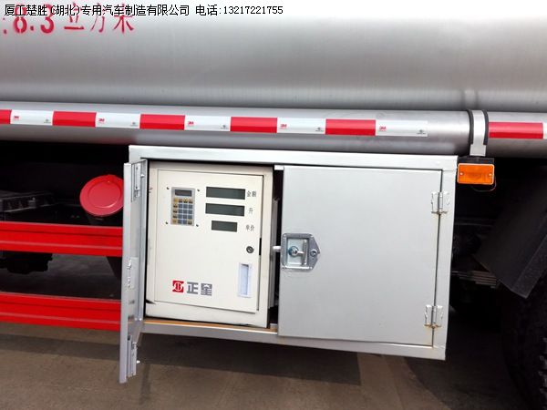 ①流动加油车车载加油机,标配大流量车载加油机一台,每分钟流量可达60L-90L,标配15米自动回位卷盘及大口径油枪,可实现计量计金额加油。