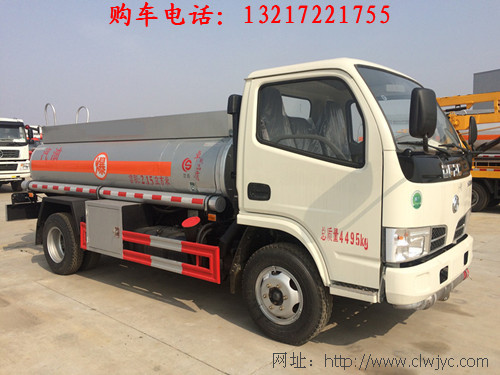 罐体标准容积为5立方米,标配欧标罐口、紧急切断装置(海底阀)。罐体采用武汉钢铁公司Q235优质国标5mm碳钢板材一次卷压成型,完全做到无缝成型。罐体内均设有多道防波隔板,采用高压气体试漏检测,使罐体具有强度高,重心稳,车辆运载安全平稳等特点。整个罐体分单仓或多仓,仓内可分室,中间隔板下端有通孔,每仓中间焊有分仓加强波隔板,以减轻汽车行驶时罐体内油料的冲击和提高罐体的刚度。罐体外表涂防锈漆及装饰漆,罐体及各保险杠贴红白色视觉反光条,罐体两侧贴“爆”字,顶部罐口安装有呼吸阀。 |