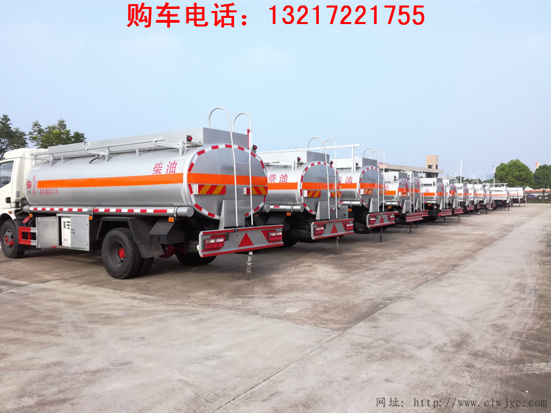 流动加油车标准配置:欧标一套(欧标罐口、紧急切断阀、下装油口、油气回收、防溢漏探杆),大流量加油机,静电带静电卷盘,自吸自排泵,其他(罐顶包围、侧护栏、新式后保险杠、工具箱、挡泥板、后爬梯、出料箱,炮筒带罐体等长输料管两根、灭火器)
